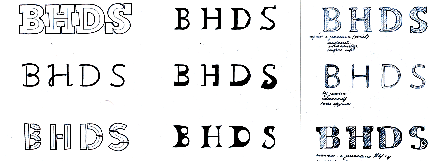 нарисовать буквы BHDS (три подхода), опираясь на представленный образец скелета.